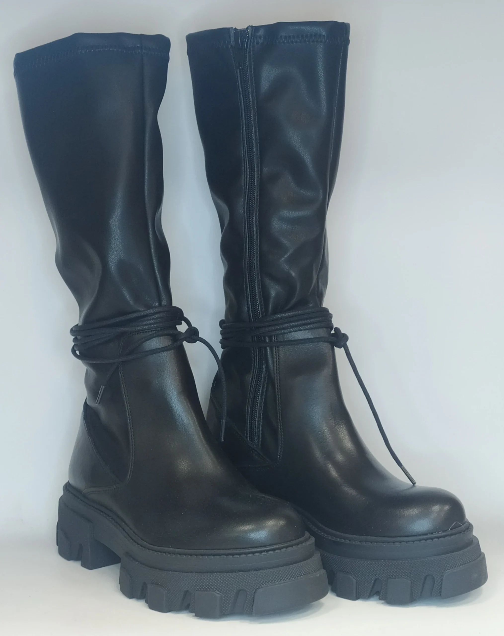 Stivale donna con cerniera, decorato da un laccio intorno alla caviglia