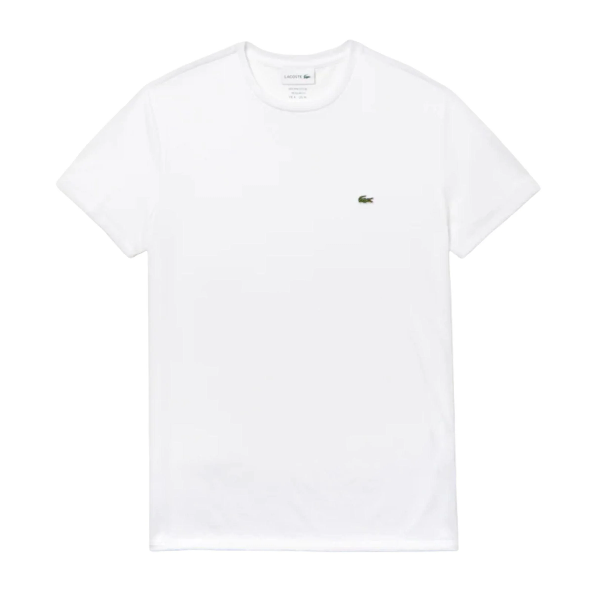 Il bianco puro della T-shirt è un classico senza tempo, che si abbina facilmente con ogni tipo di abbigliamento, rendendola un pezzo versatile per ogni guardaroba maschile. Il dettaglio distintivo è l’iconico coccodrillo verde Lacoste ricamato sul petto, simbolo di qualità e stile. Che sia per un look casual o per un outfit più strutturato, questa T-shirt è la scelta ideale per chi cerca qualità, comfort e un’eleganza discreta.
