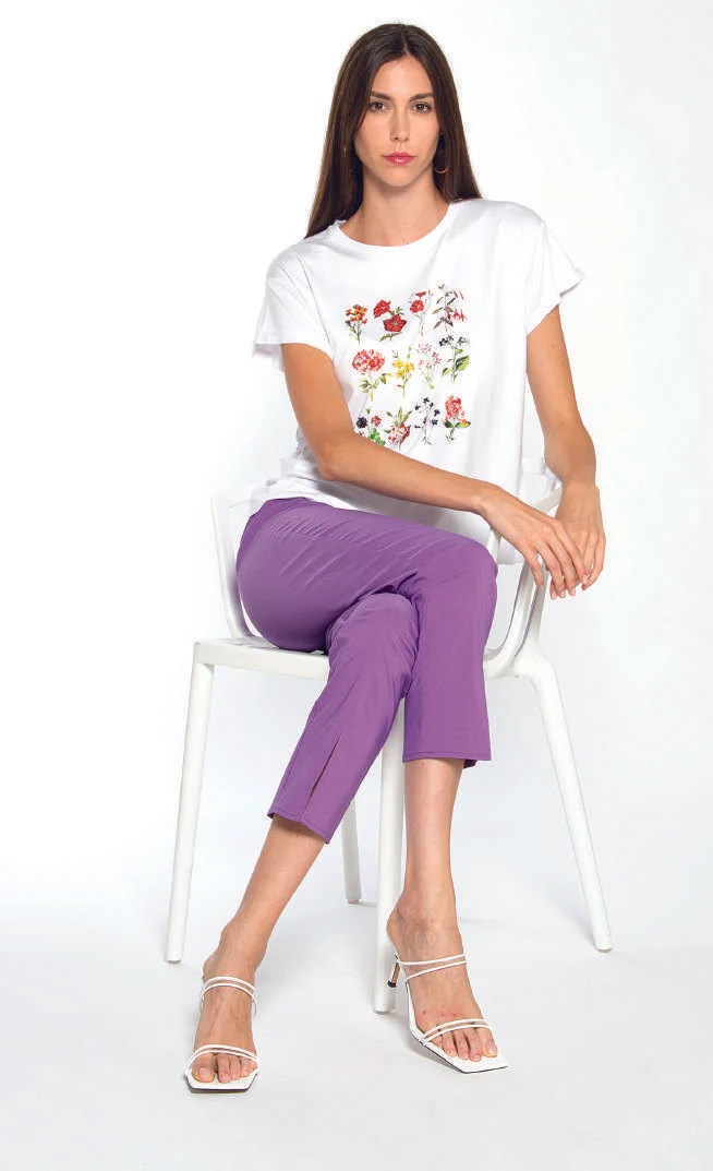T-SHIRT DONNA BIANCA VISCOSA CON STAMPA FIORI E GLITTER