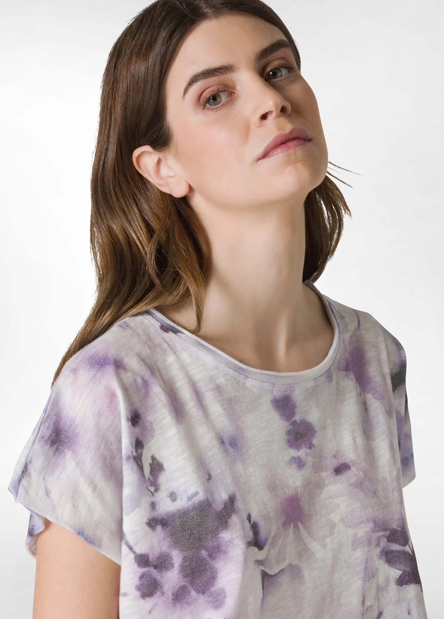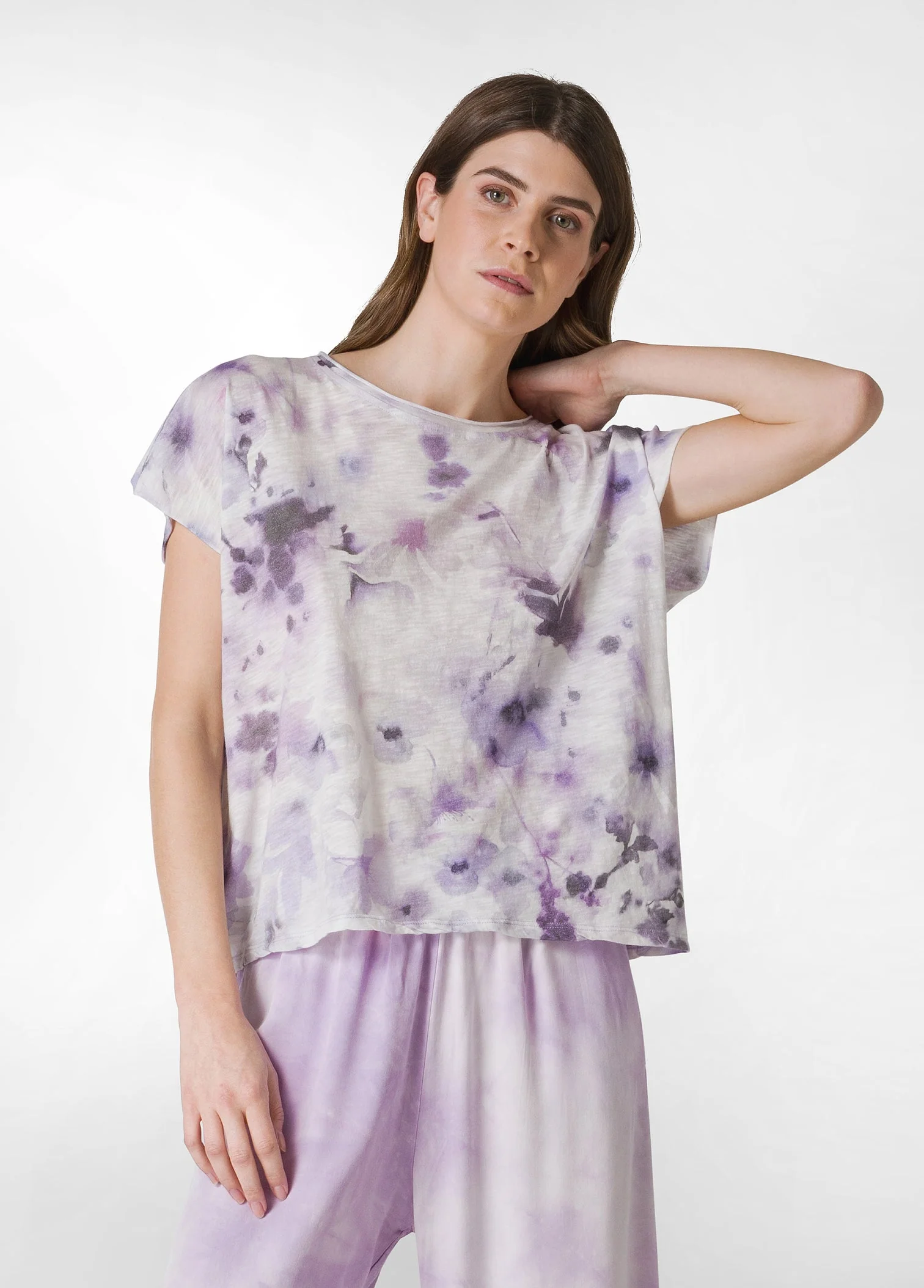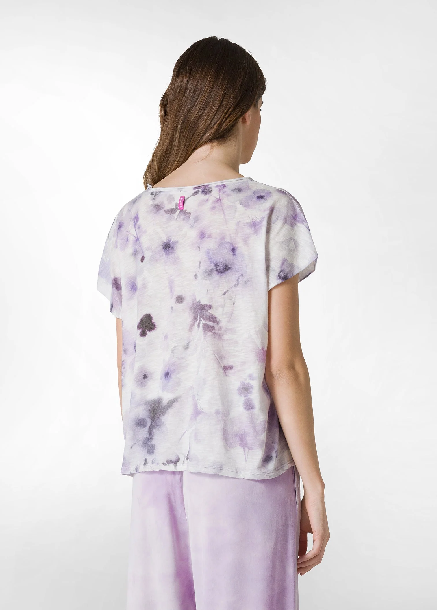 T-SHIRT YOGA STAMPATA IN JERSEY FIAMMATO VIOLA