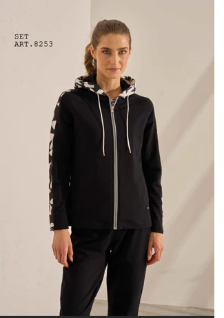 TUTA BLU FULL ZIP CON CAPPUCCIO CON INSERTO IN FANTASIA BIANCO/BLU/AZZURRO MANICHE CON INSERTO IN FANTASIA BIANCO/BLU/AZZURRO PANTALONE MODELLO DRITTO COLORE BLU Composizione 95,00 % cotone – 5,00 % elastan INSERTO 70% poliestere 30% cotone