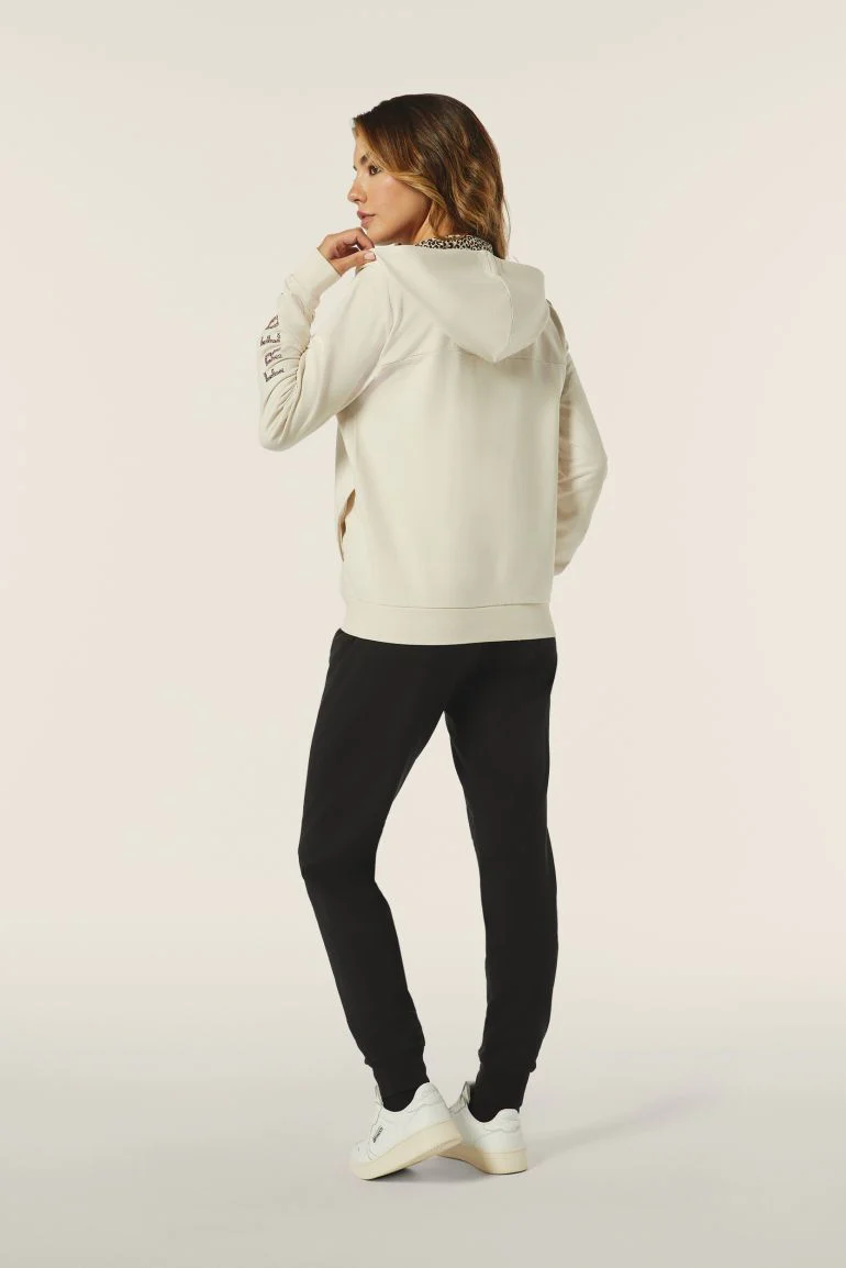 Tuta donna in felpa con zip e cappuccio foderato animalier