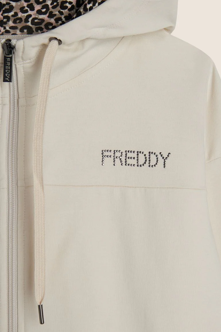 Tuta donna Freddy in felpa con zip e cappuccio foderato animalier