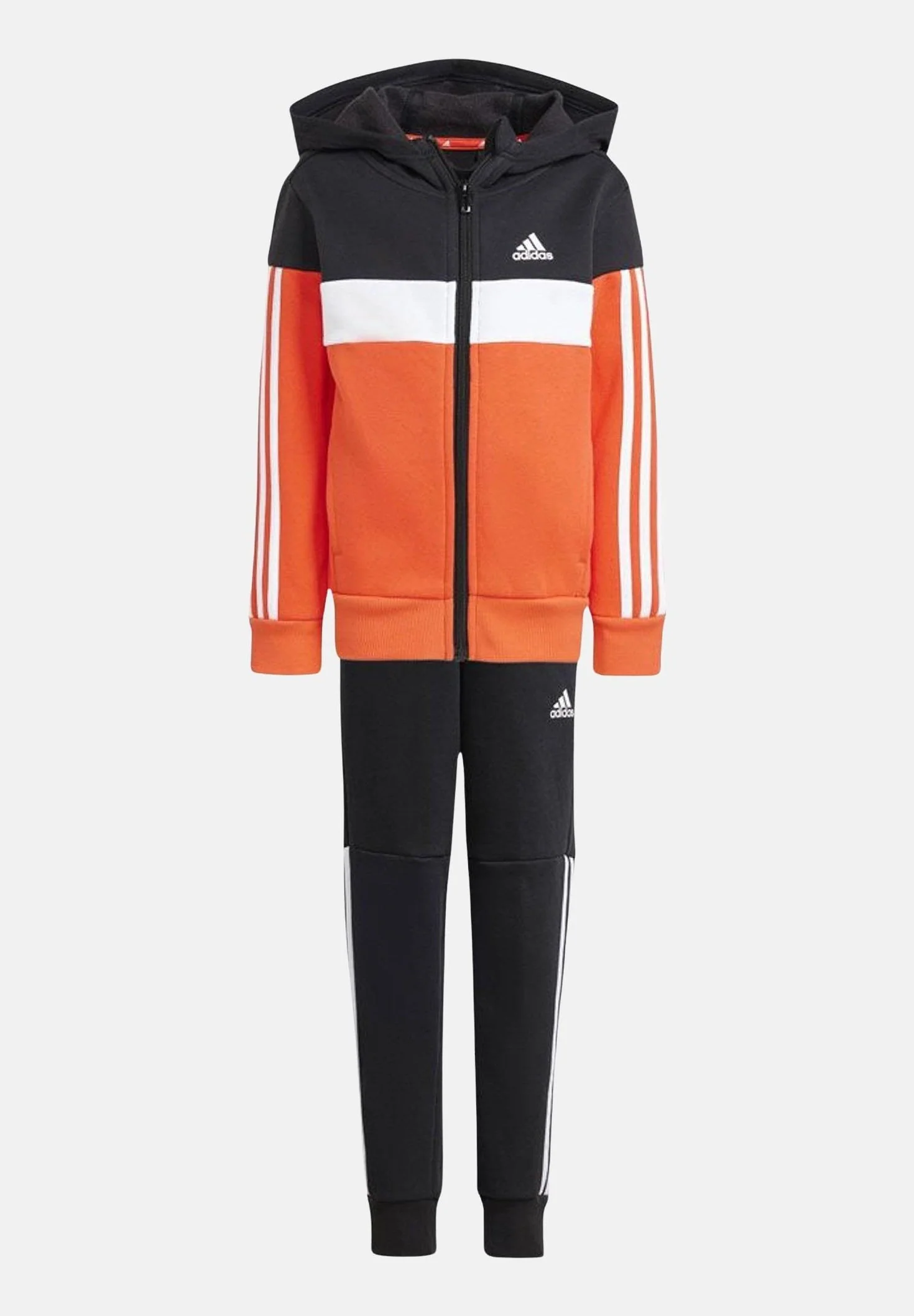 ADIDAS ORIGINALS Tuta Tiberio 3-Stripes Colorblock Fleece bicolor per bambino e bambina. Questa tuta da ginnastica per bambini è realizzata in pile per tenerli al caldo quando le temperature scendono. Il morbido cappuccio protegge dal freddo. I pantaloni possono essere regolati con una coulisse per rimanere al loro posto. Naturalmente, le 3 strisce sportive sono un must per tutto l’anno. Si consiglia un lavaggio ed una stiratura a media temperatura. Stagione autunno inverno.